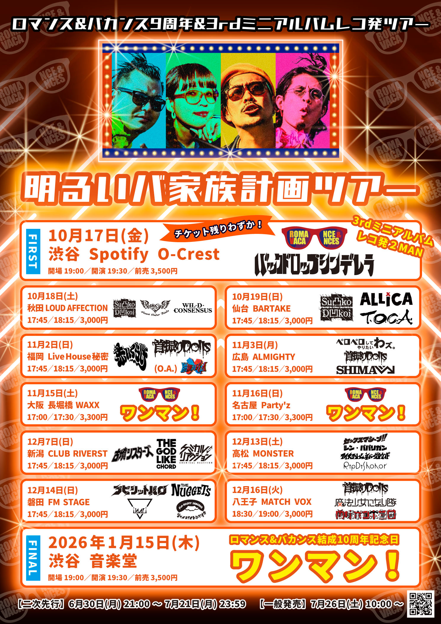 第5弾出演者解禁!9周年&3rdミニアルバムレコ発ツアー「明るいバ家族計画ツアー」